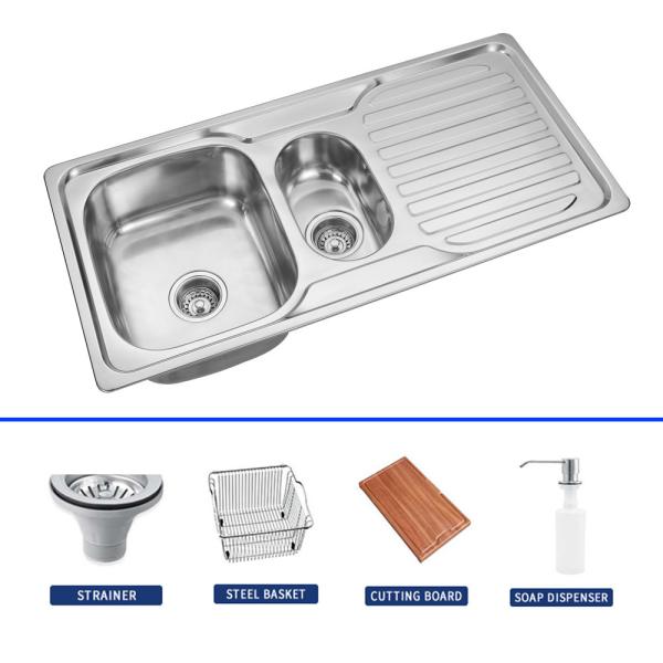 With its sleek and modern design, our topmount kitchen sink is the perfect addition to any kitchen. Its versatility and functionality make it suitable for any household, whether you have a small or large kitchen. So why wait? Upgrade your kitchen with our topmount sink with drainboard and experience the convenience and elegance it brings to your daily routine.